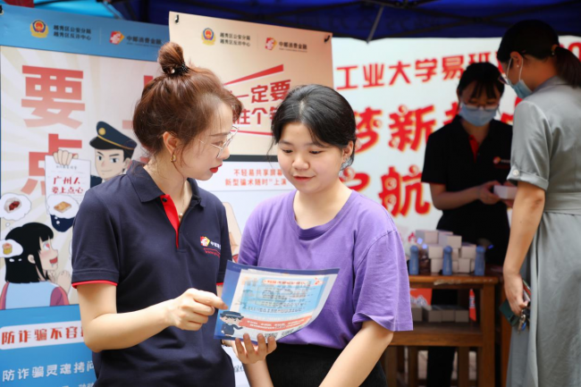中國消費者報訊(記者聶國春)9月1日,中郵消費金融聯合廣州市公安局越秀區分局走進廣東工業大學,在開學季開展了一場輕松活潑的反詐騙科普活動,為在校大學生與老師現場科普防詐騙知識,共吸引了近千名學生參與。