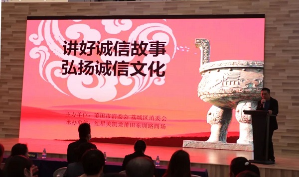 中國消費者報福州訊(陳莉蘭 記者張文章)記者日前了解到,為展現(xiàn)新時代中國商人守信踐諾、以誠立身的精神風貌,激勵廣大經(jīng)營者更好地講誠信、守信用,12月1日,福建省莆田市消委會聯(lián)合荔城區(qū)消委會在紅星美凱龍莆田東圳路商場開展以“講好誠信故事弘揚誠信文化”為主題的誠信經(jīng)營講座活動。90余名商場經(jīng)營者參加了此次活動。
